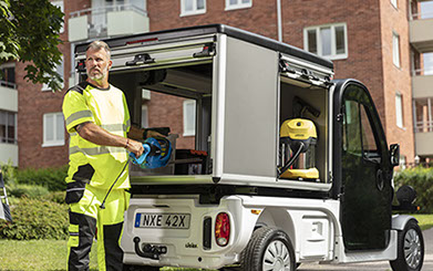 Elfordon för proffs! Upplev Pulse4, ett fordon som går 100% på el och som har många användningsområden. Ett självklart verktyg för dig som arbetar exempelvis inom distribution, industri eller med utomhusarbete i stadsmiljö. Närmare exempel på vanliga användningsområden där Pulse4 kommer väl till pass är inom fastighetsskötsel, matdistribution, paketleverans och park- och trädgårdsarbeten. Vilket blir ditt främsta användningsområde? Utforma efter behov